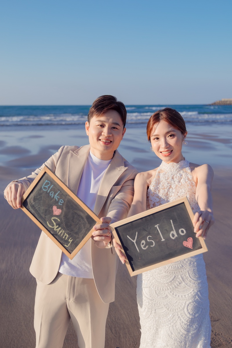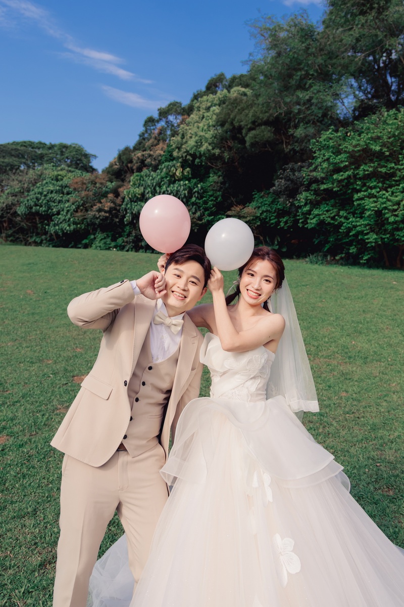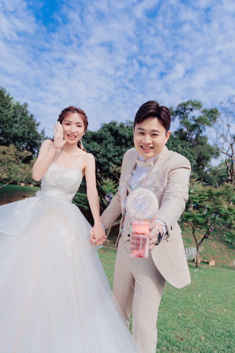 因老婆最想要好天氣的藍天白雲,在各種協調之下終於如願在沒下雨的天氣拍攝到(特別感謝禮服秘書Sarah打了不下10通的電話跟各老師喬時間),