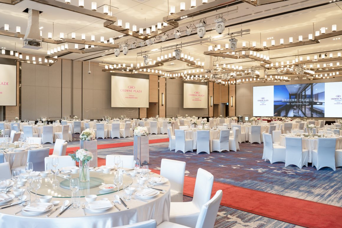 在台南大員皇冠假日酒店,愛情的承諾將擁有最完美的舞台。位於2樓的宴會廳,挑高無柱的設計與大面落地窗,讓自然光灑落,如同為新人鋪展的一條幸福紅毯。可容納480位賓客的寬闊空間,搭配500吋LED大屏幕,讓每一幕婚禮誓言都被清晰定格,成為永恆的記憶。步上5樓,露天景觀花園則是浪漫的心靈綻放之地。花草簇擁、星光閃爍,在微風中,愛情的見證更顯夢幻。無論是盛大婚宴,還是唯美派對,台南大員皇冠假日酒店都以奢華與細膩,將新人一生一次的幸福時刻,化作專屬的永恆篇章。