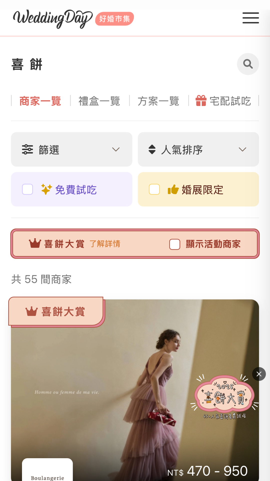 3. 找到最符合你的預算的喜餅!