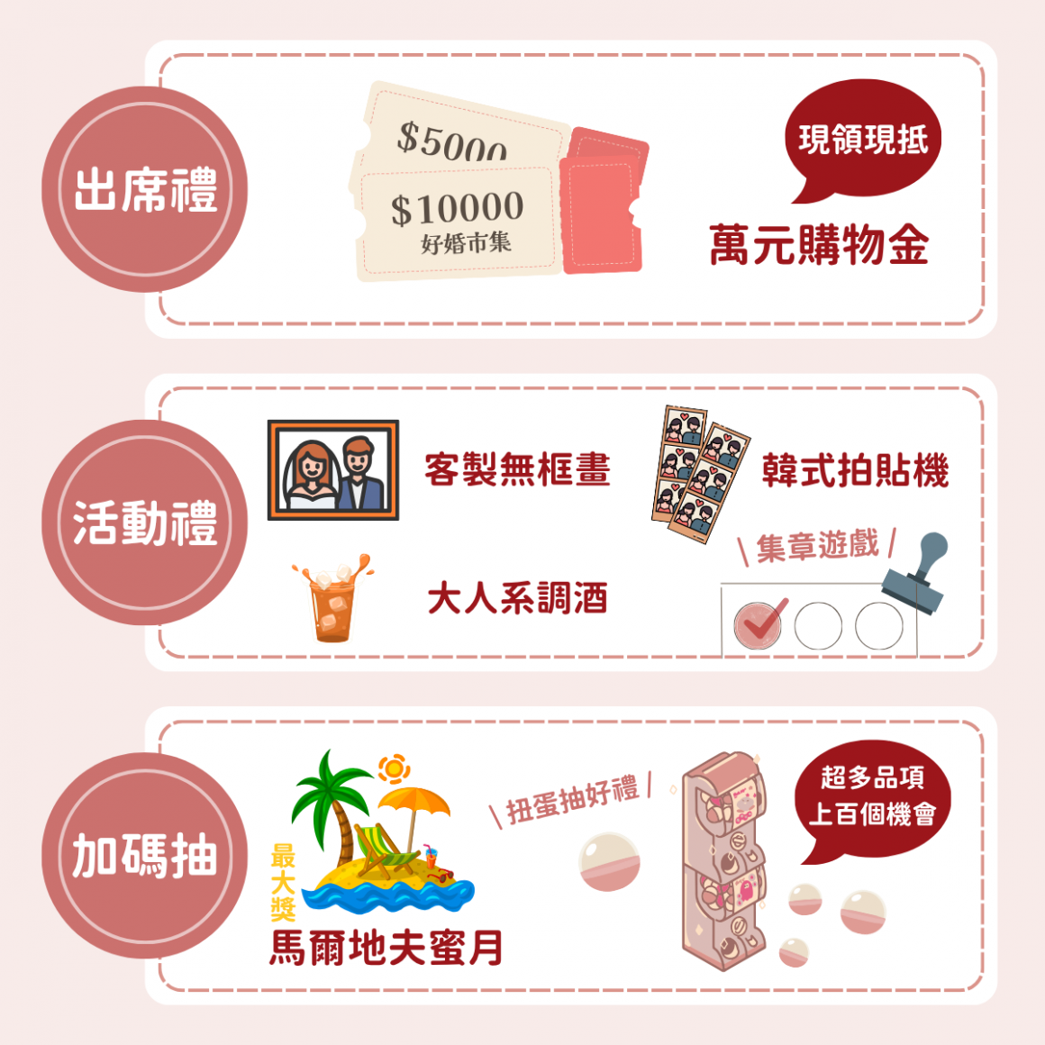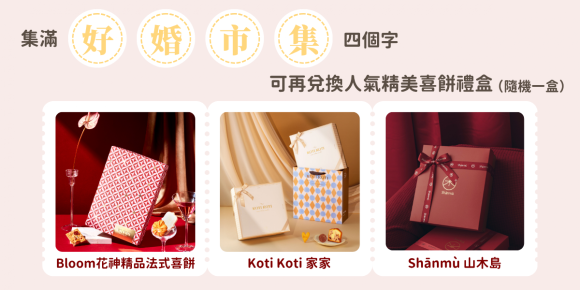 進入好婚市集前,準新人們將收到來自邱比特的神秘小禮,為你們開啟幸福新旅程