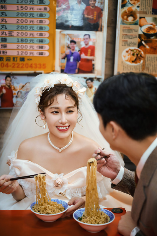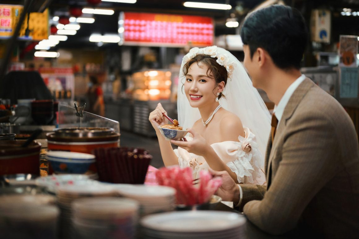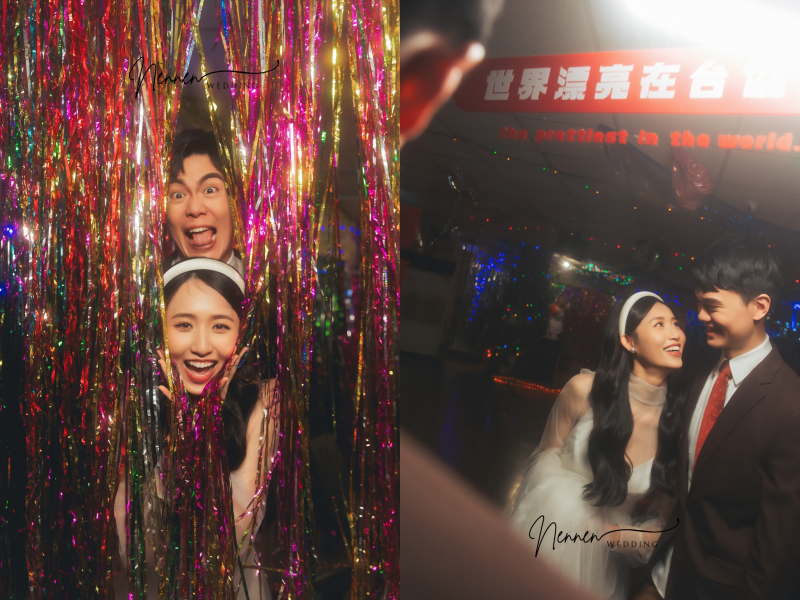 在市場拍婚紗,可以感受到濃厚的人情味,隨時都有可能從攤商手中獲得意想不到的「拍攝道具」,畫面既有趣又充滿記憶點。想拍出不一樣的婚紗照?市場會是你們最有溫度的選擇。
