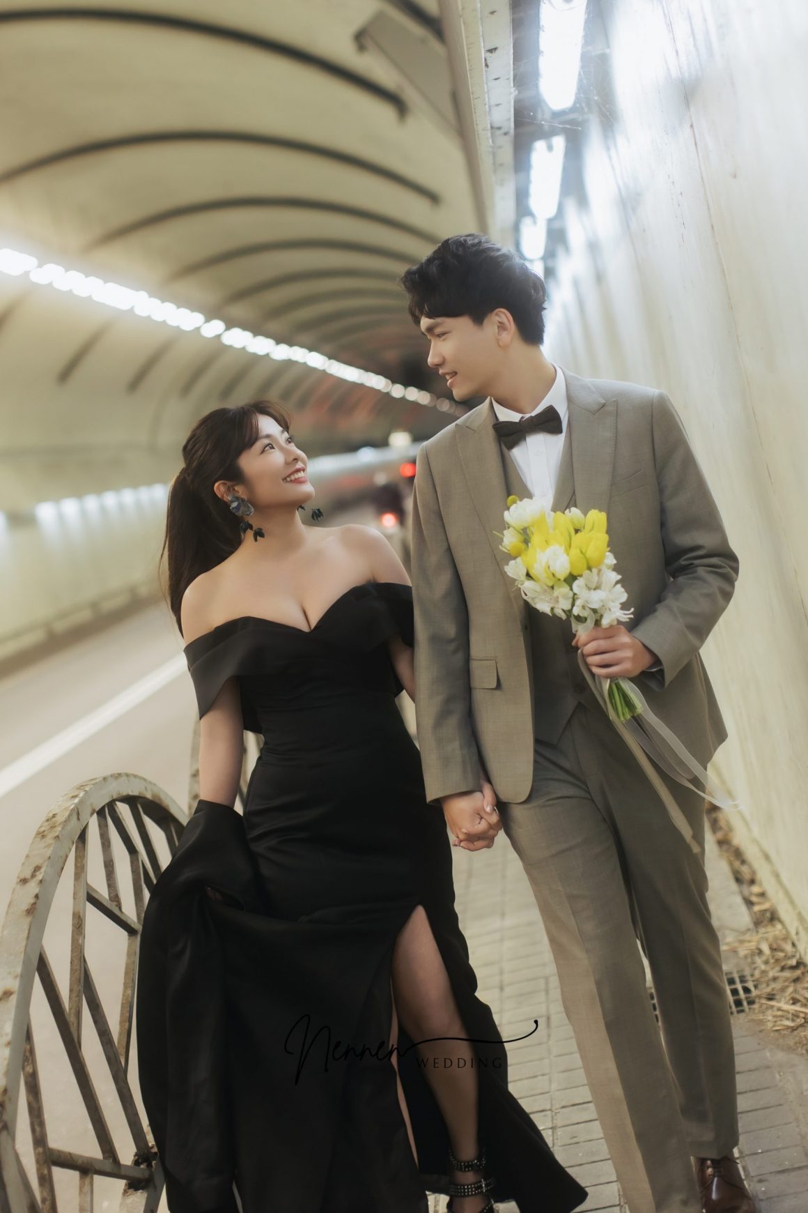 在說出「我願意」的那一刻起,兩人的生命旅程意味著即將邁入下一階段,選擇隧道作為婚紗拍攝場景其實別具意義。兩人攜手從隧道的一端走向另一端,過程有笑有淚,如同你們相知相惜的愛情故事。