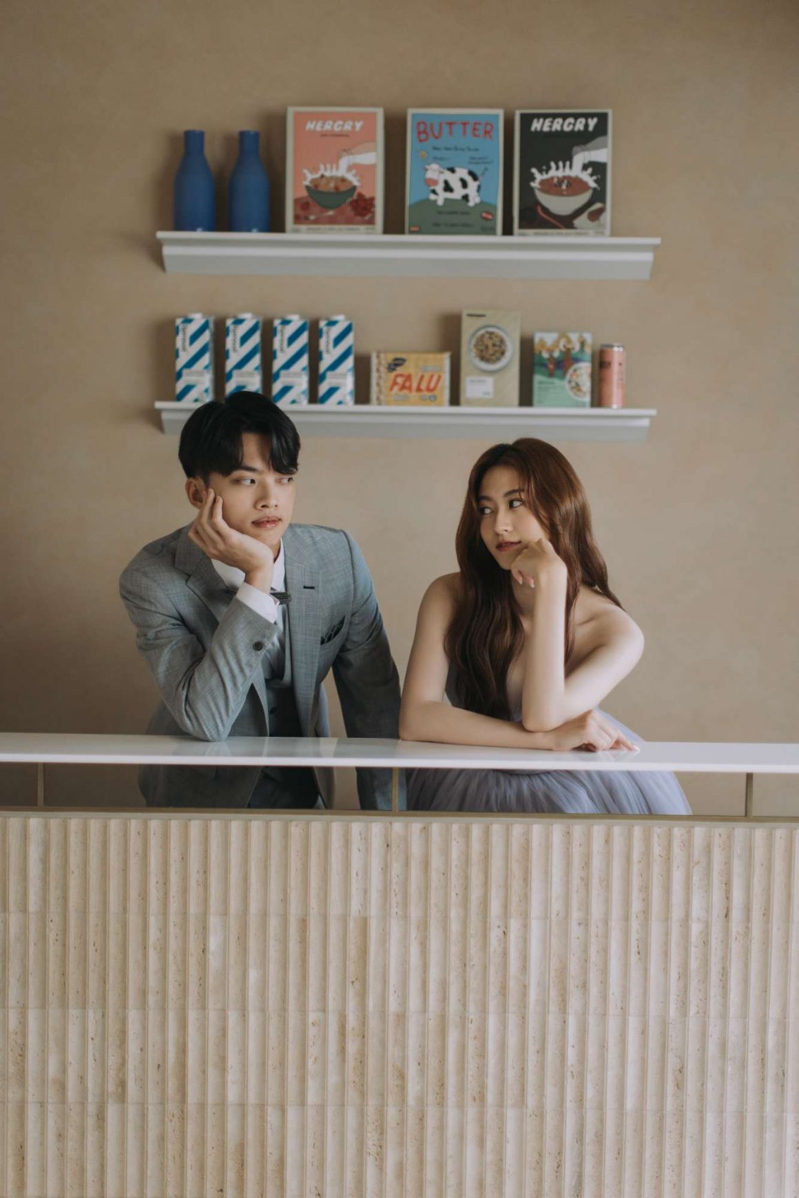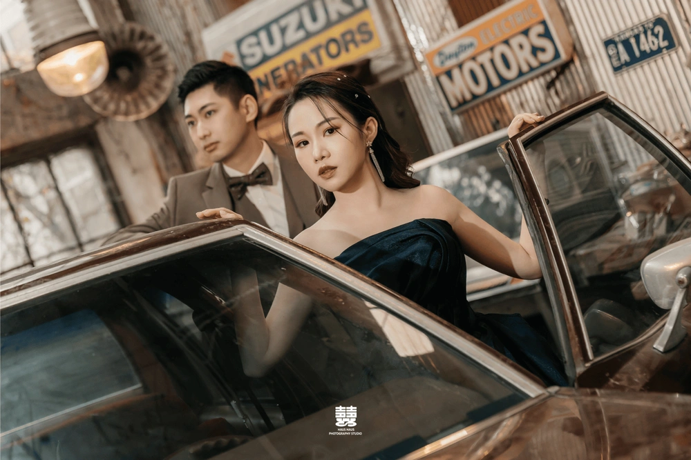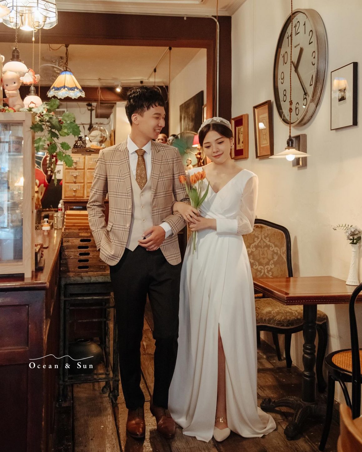 針對不同的婚紗照風格,想拍出生活感的新人可以選擇市場、車站、咖啡廳;想拍出電影感的新人可以選擇隧道、酒吧、廢墟。這些拍攝地點與拍攝風格並沒有絕對關係,想把你們在復古小店的互動過程拍成時代劇,絕對也是沒問題。