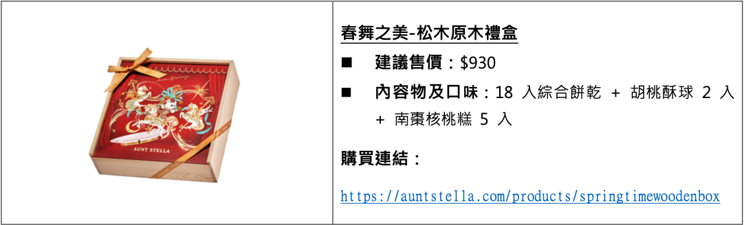▲「什錦水果餅乾」及「胡桃酥球」為 Aunt Stella 詩特莉冬季禮盒限定口味。 「Aunt Stella 詩特莉」新年限定 新品資訊