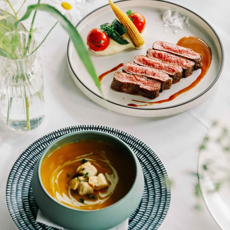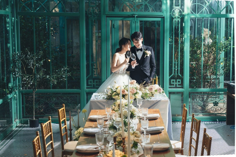 大院子位於大安區,以百年日式歷史建築與玻璃屋景觀聞名,室內婚宴廳加上綠意盎然的戶外庭院空間,可以安排證婚或Candy Bar,適合50-100人的美式婚禮或小桌數婚禮,氣氛溫馨且隱密度高。婚宴菜色風格偏西式,以位上餐或半自助式 Buffet 為主,婚宴餐點費用約在 NT$1,880+10% 至 NT$3,380+10% 之間。