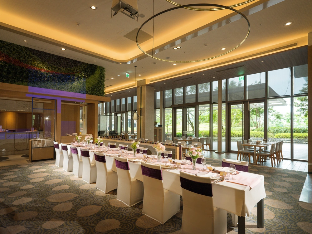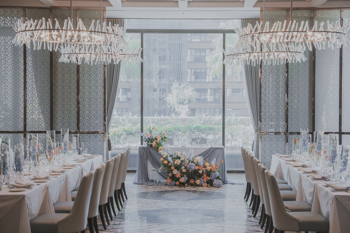 中山九昱希爾頓逸林酒店位於捷運中山站,交通方便,無樑柱的婚宴空間,具有半開放露台證婚空間,半遮蔽式包廂及主題中島,場型規劃及場地運用靈活。 提供西式自助/半自助Buffet,菜單中西合併,有烤肋排、沙朗牛排、德式豬腳、海鮮巧達濃湯,也有中式油飯、蒸鱸魚、雞湯等中式口味,單人 NT$2,280 + 10% 起,滿足親友多元餐飲需求。