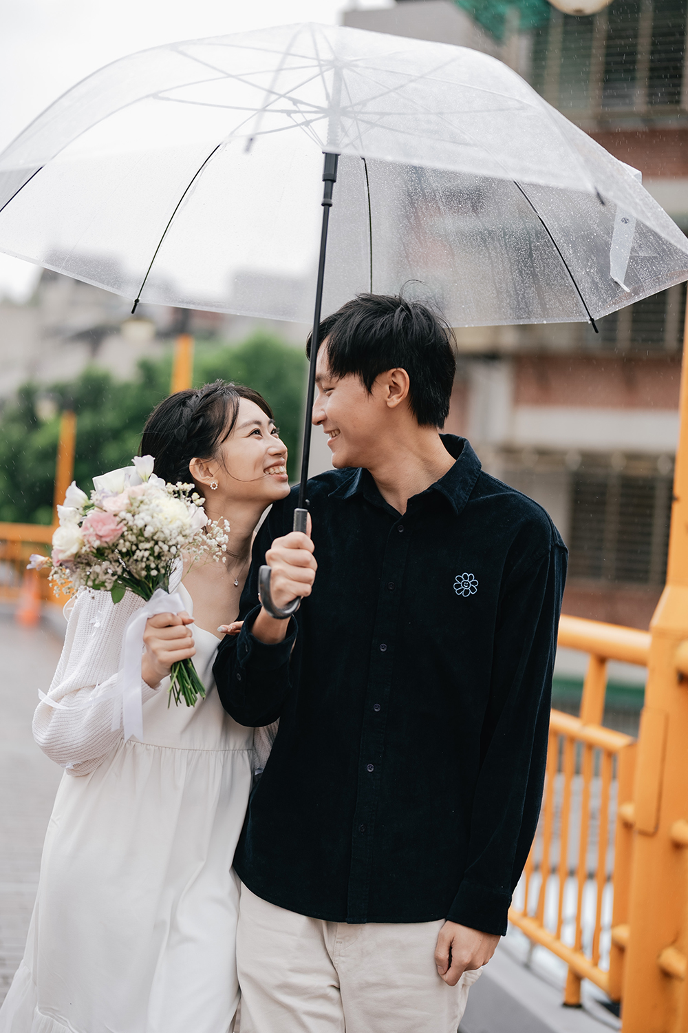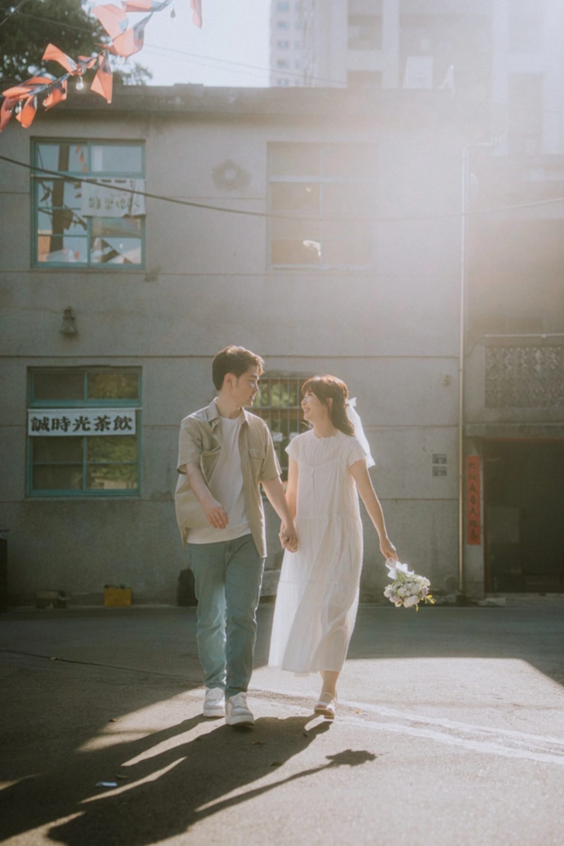 如果你們平常就是走日常自然風,也完全不用刻意打扮,白襯衫+牛仔褲、情侶色系穿搭、洋裝搭襯衫,反而能拍出最真實、最有生活感的兩人日常。