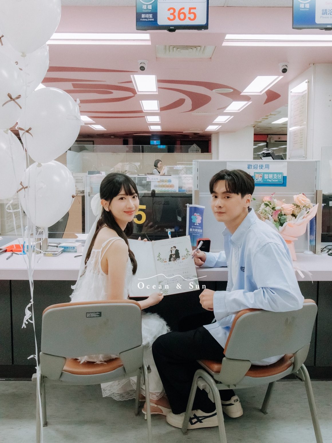 結婚登記流程提前準備好文件,大多半小時內就完成了!如果有安排攝影師,建議預留1~2 小時。