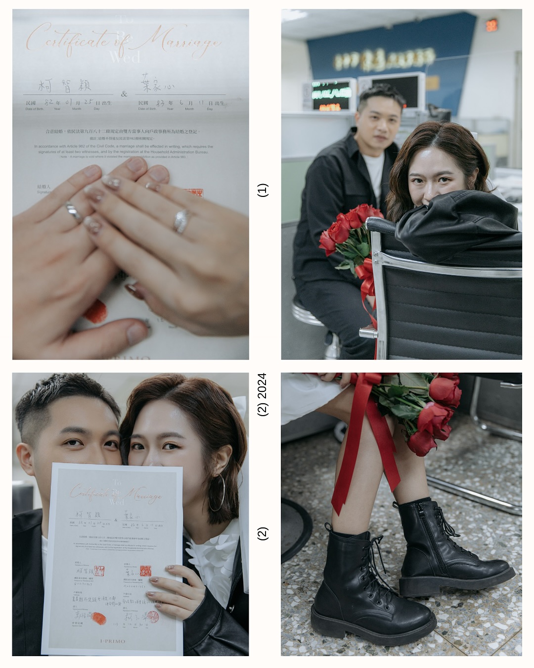 - 拍攝內容:戶政事務所登記流程、簽結婚書約與簡單合照。