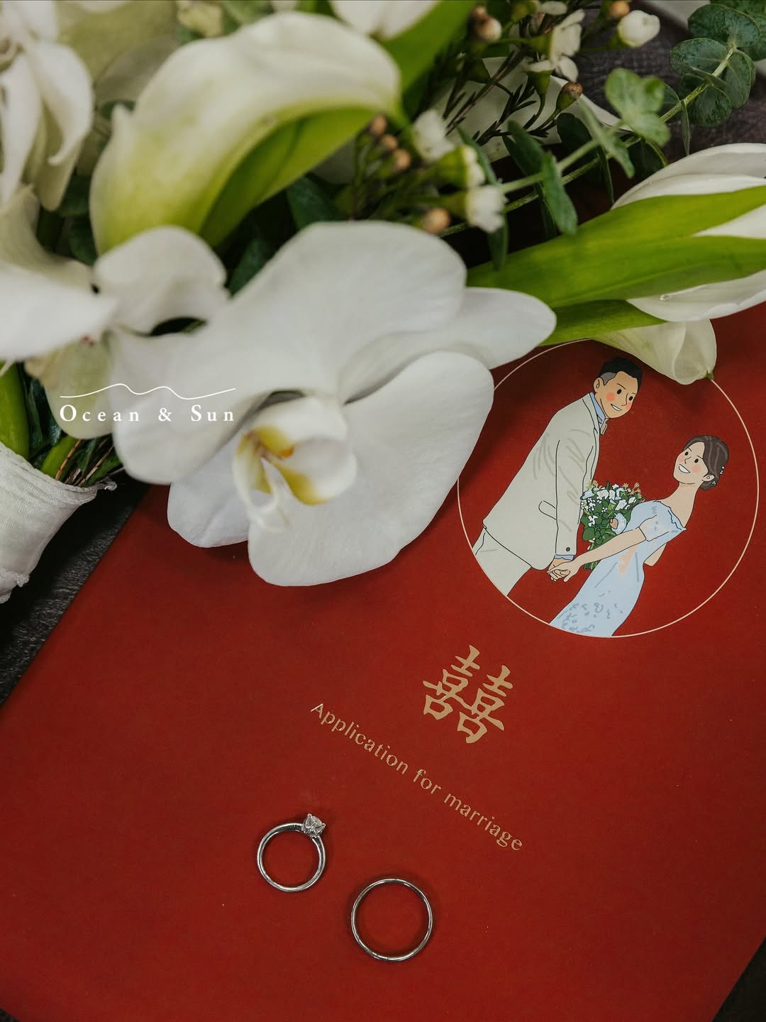 - 書約、對戒、鑽戒、定情物都能成為照片裡很有故事感的元素,也推薦準備一束小捧花或戴上頭紗,讓整體照片多一點婚禮氛圍。