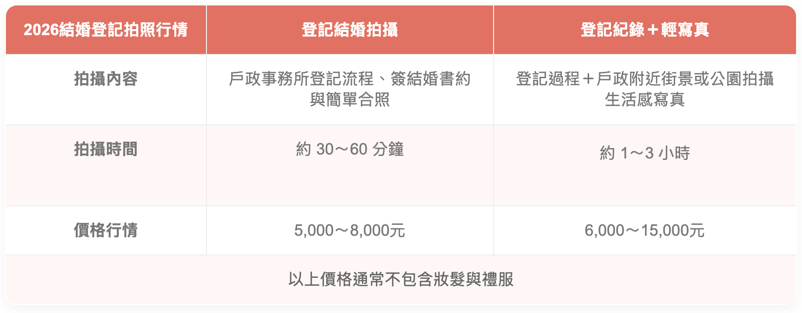 登記結婚拍攝價格