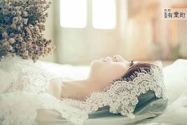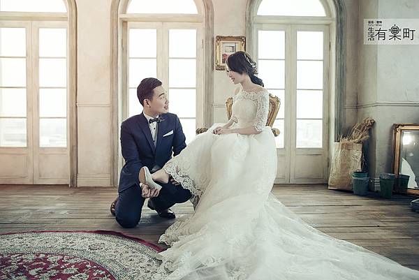 ▶指定動作:老公幫忙穿鞋照,躺在頭紗上的模樣,回眸照等等。