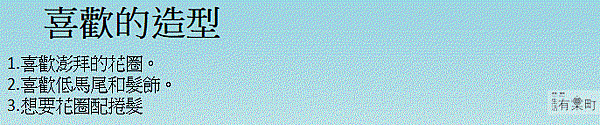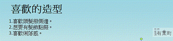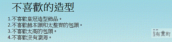 ▶關於喜歡與不喜歡造型,能夠盡量描述得越清楚越好,同樣要附上圖片供新秘參考。