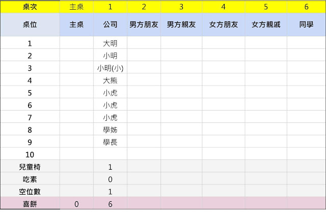 因為我的訂結流程都在宴客飯店舉行,所以沒有用到這個表格!