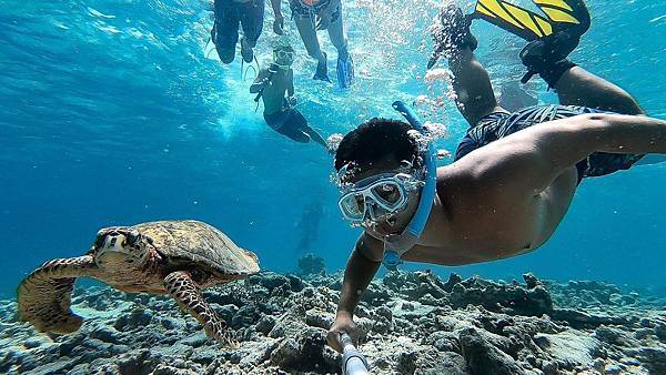 每次浮潛都是全新的體驗,你永遠不知道今天和你一起潛水的會是鯨鯊、海龜或魟魚,