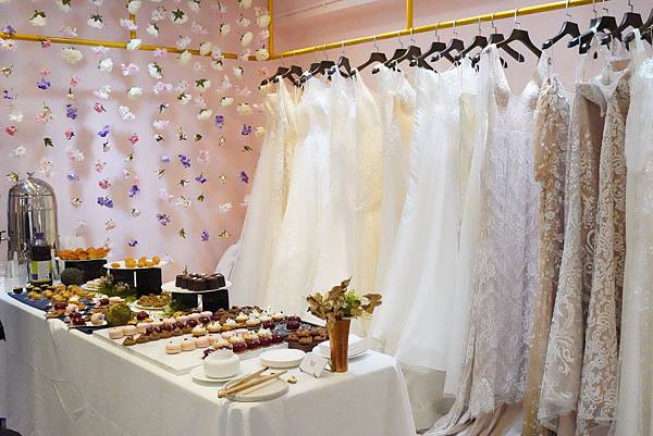 Tara Lauren展售發表會活動現場擺放多件Tara Lauren的經典款式,屏除傳統婚紗慣用的硬式大澎裙、華麗亮片及緊身魚尾元素,Tara Lauren選擇以細緻的刺繡、浪漫的蕾絲點綴禮服,透過特殊的剪裁及設計,讓新娘在婚禮上不再受限於禮服限制。