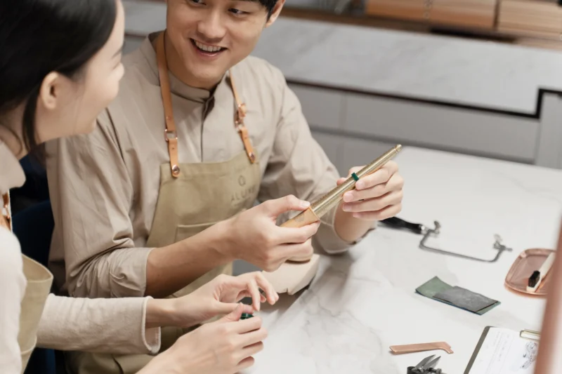 如果你也想親手為另一半打造一枚專屬婚戒或求婚鑽戒,昕室 Sunny Side Studio 的金工體驗課程超值得一試!在日式木質空間中,由職人一對一教學,從K18金或鉑金鍛造、刻印、焊接到拋光,全程親手完成,就算是新手也能輕鬆上手,當天就能把戒指帶回家!若選擇求婚鑽戒款式,還能自選鑽石,由職人完成鑲嵌,每顆0.2ct以上鑽石皆附日本CGL證書,來一場充滿儀式感的專屬回憶吧!