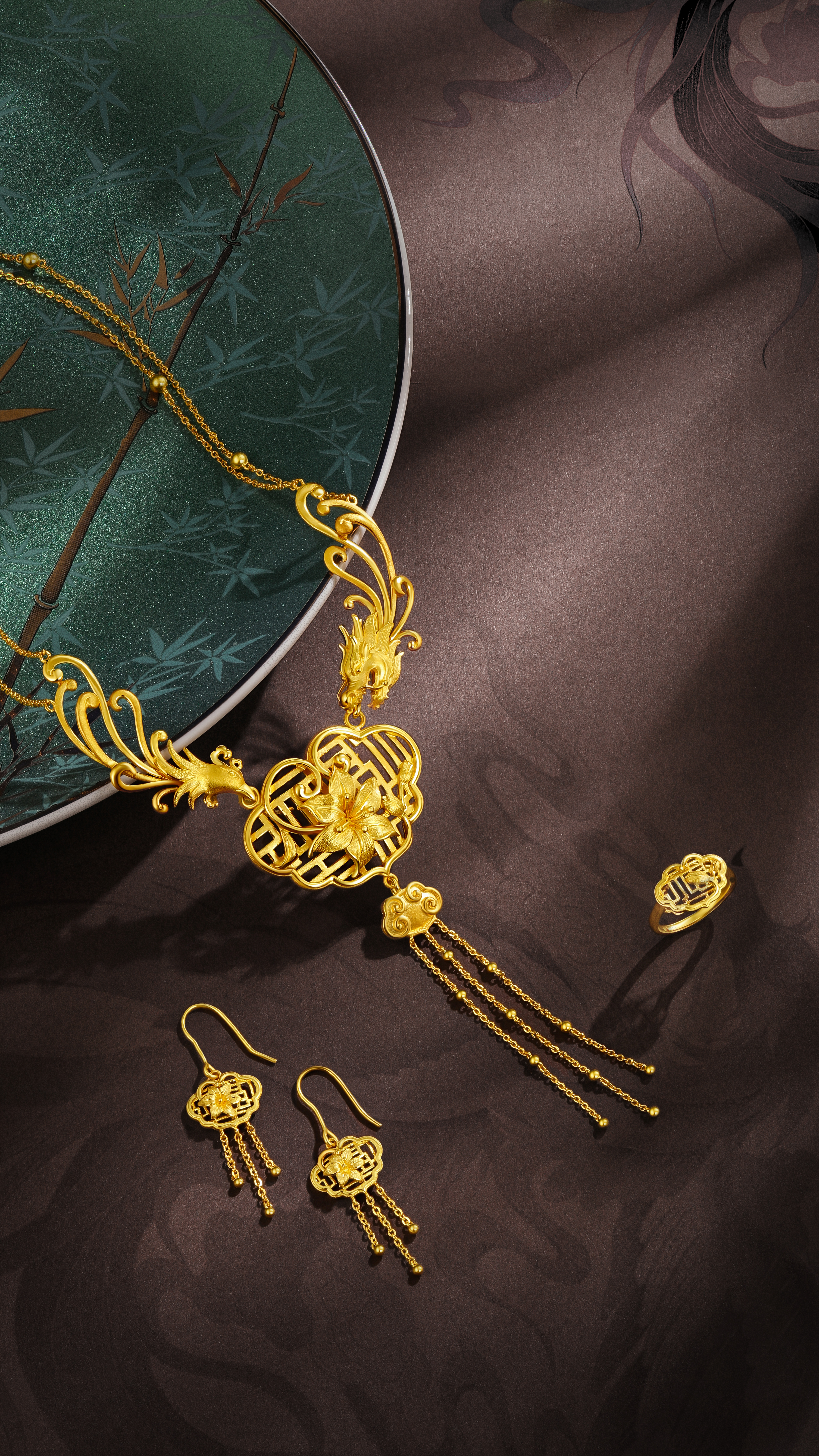 另外,金長山更引進各式以古法黃金、燒藍琺瑯、花絲織錦等皇室工藝製成的純金臻品,將金飾打造成如藝術品般精緻動人。而風格獨樹一幟的品牌體驗店,更是親身體驗宮廷匠心、東方雅韻之美的最佳選擇。