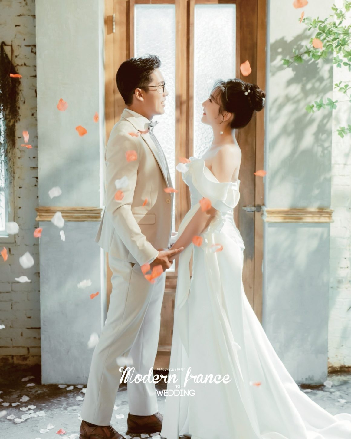 位在中和的現代法國已在婚紗界耕耘超過25年,深厚的專業與經驗絕對能協助兵慌馬亂的新人搞定人生大事!其實很多看起來超有feel的婚紗照,可能只是雜草叢生的路邊,但經過現代法國攝影師的巧手就是氣勢磅礴的作品,甚至是根本不可能覺得適合拍婚紗的廢墟,透過打光與角度創造出時尚又前衛的風格婚紗。