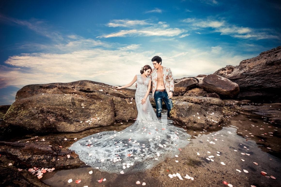 在海邊拍攝大景婚紗照是許多新人心中最嚮往的事,自然、唯美的海景畫面,一起踩著浪花,漫步在夕陽西下的海灘,拍出一系列浪漫又迷人的婚紗照。寬闊而自由的冒險精神,海天一線的景色充滿了溫柔的色彩,寧靜而優雅,讓你在迷人的海景前許下永恆的誓約。