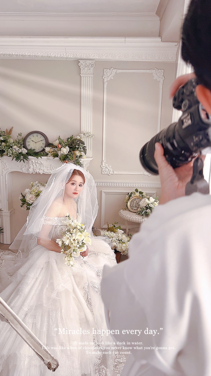 在拍攝的過程中,他細心的注意著每個小細節,裙襬的擺放,溫柔有耐心的服務著🫶