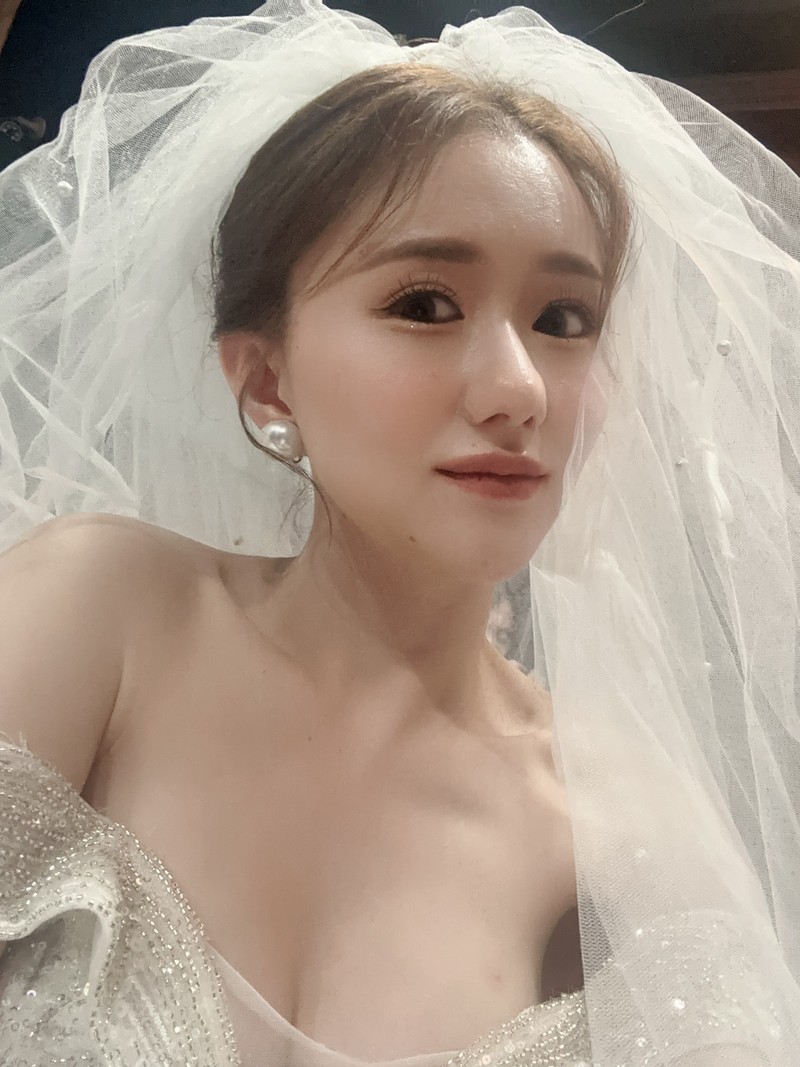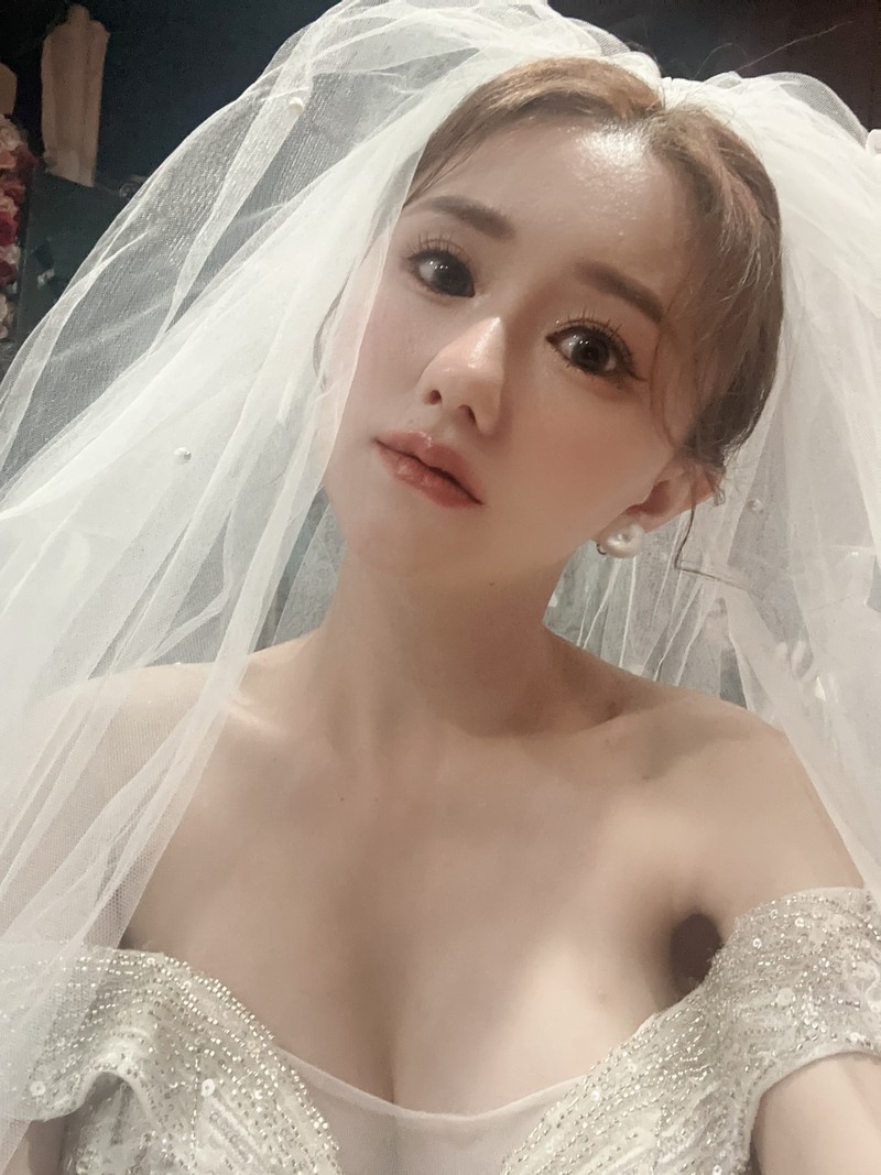 拍攝當天我第一個遇到的是造型師nicky,我們討論著我想要什麼樣子的造型,因為我的個性是覺得信任很重要,我沒有太多的要求,我只給她看了一張照片,給她自由發揮,她就做出我夢想中的新娘造型。