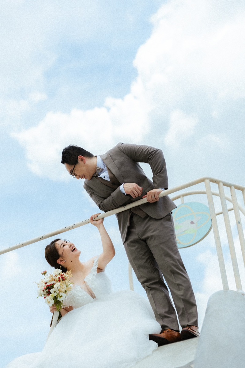 當初選擇鍾鳴是被他活潑的風格和明亮的調色吸引,拍攝當天確實也沒有讓我們失望,一整天都玩得很開心,拿到照片時也和先生邊看邊笑,不得不說真的很會抓拍,照片很好的存下了當下的快樂,本來很怕話少偏嚴肅的先生當天會很尷尬,但意外的他也玩得很開心,這完全就是我想要的婚紗照,雖然每張都笑得太張狂,但絕對是未來拿出來看還是會很開心的回憶