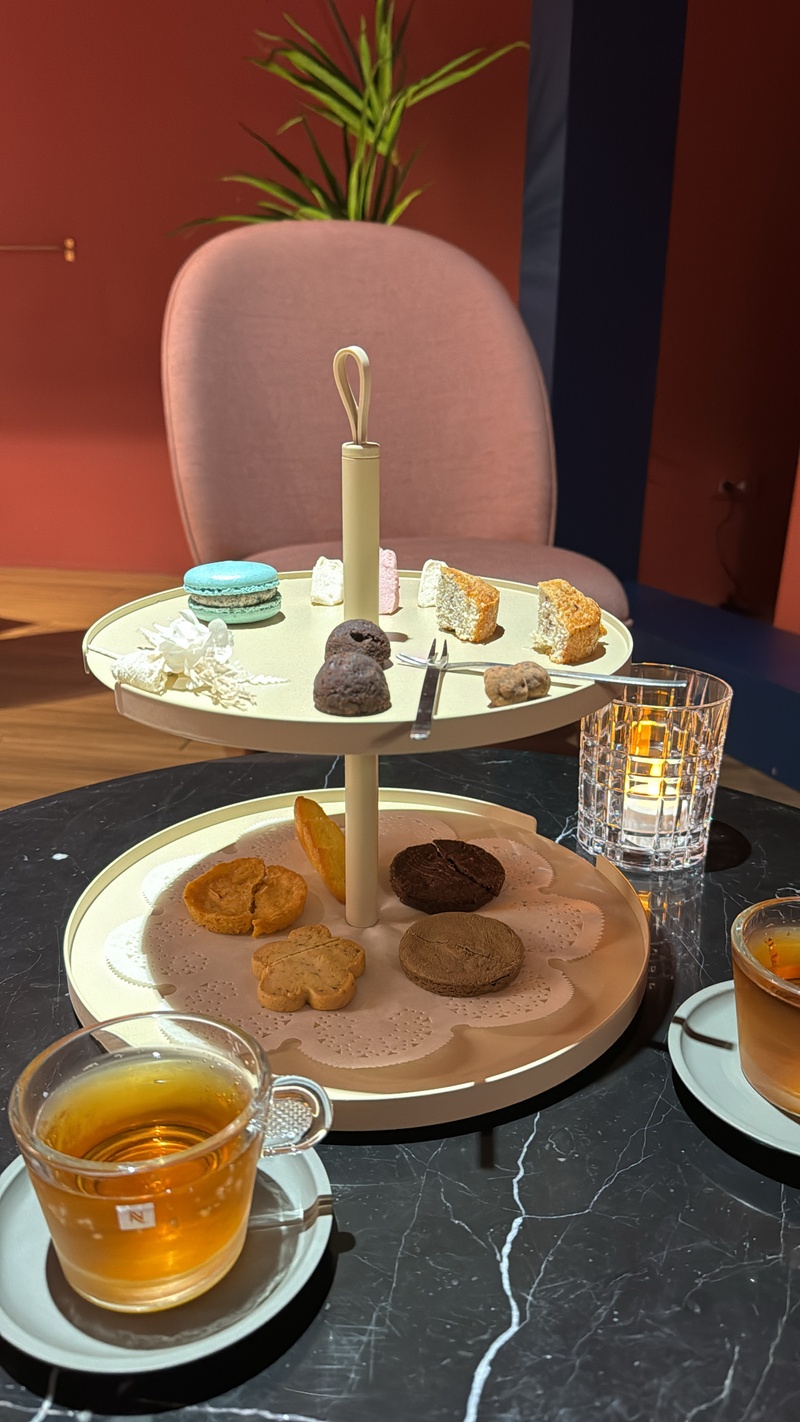 挑選紅茶做試吃搭配,試吃內容會由店家固定配置,總共10款,服務店員會在旁邊一一介紹,第一款觀音茶餅乾稍覺得普通,但到了巧克力品項令人驚豔,ROCK巧克力豆、法式布列塔尼鹽之花圓餅、經典巧克力布朗尼,另外包含馬卡龍、蛋糕、普羅旺斯鹹餅乾都蠻不錯的,吃起來很豐富,整體吃完很滿意。