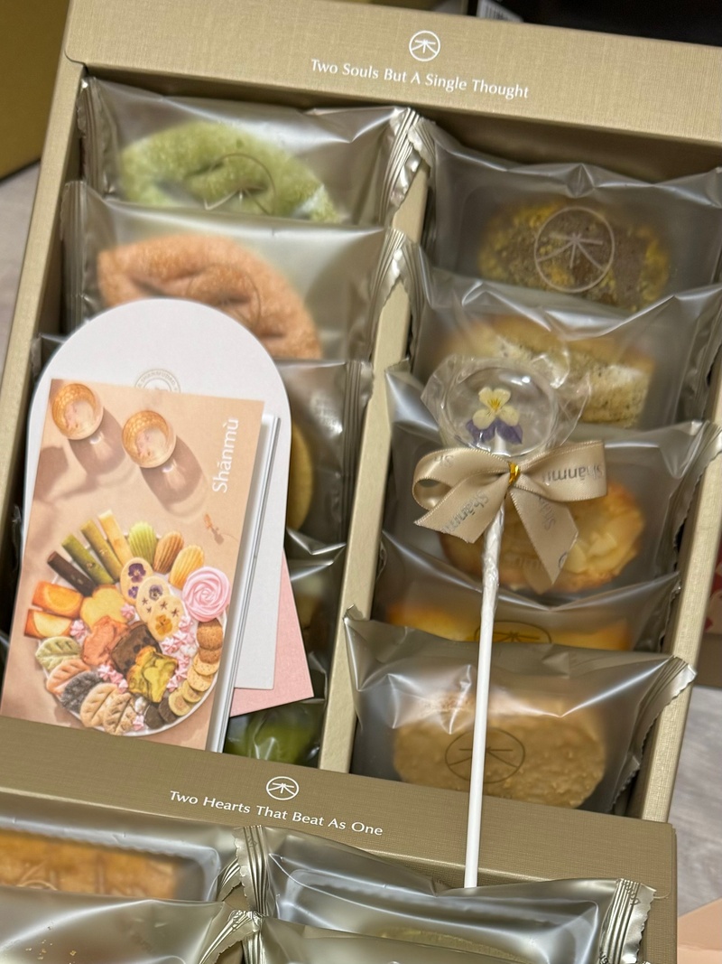 對於喜餅的選擇,實在沒有什麼頭續,單純希望找到外觀看起來高級有質感,餅乾又好吃的禮盒。