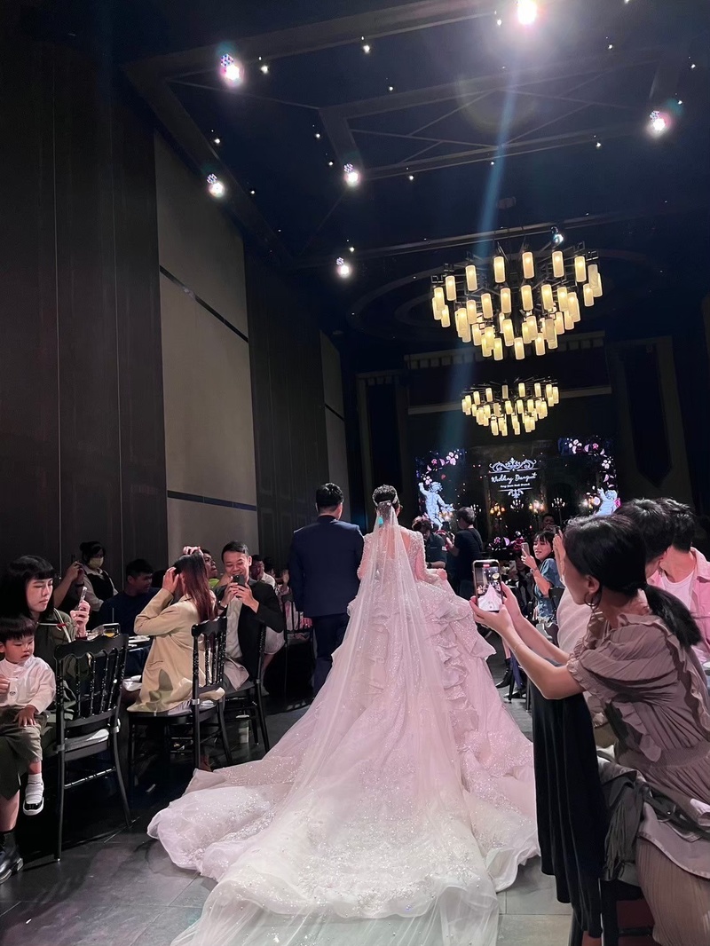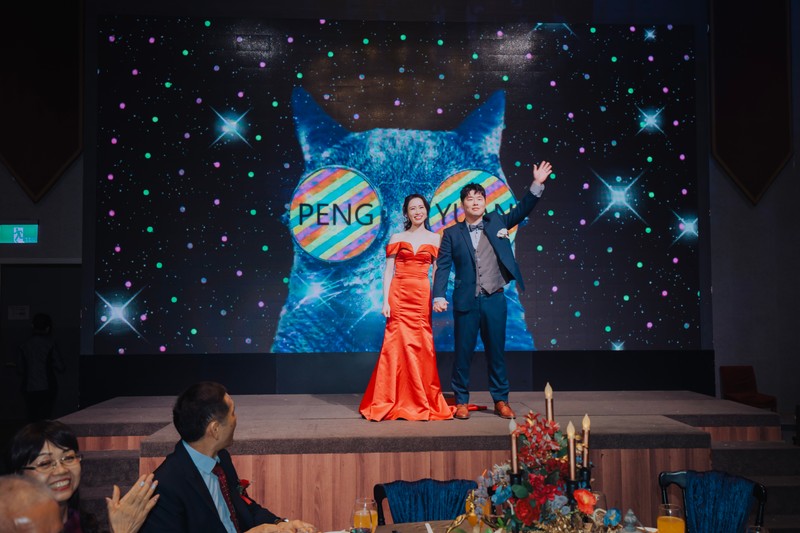 Grace一方面要和我們新人溝通,另一方面也要和他們自己的音控、外場人員、小幫手溝通調度,同時要和我們另外找的外部廠商團隊協調,結果當天整個流程都非常順利,我真心佩服婚企主持人這份工作,也真的很感謝彭圓團隊每一位夥伴的幫忙和支援,讓婚禮圓滿落幕。