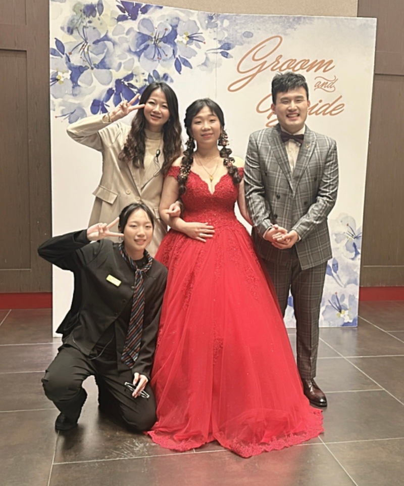 八德彭園的美好會讓人第一次見到就想下訂,這次很幸運可以遇到優秀的業務「吳豪」,他非常有耐心地向我們介紹餐廳的各種資訊,以及活動上可能會忽略的細節,讓我們快速有了對婚禮初步的概念。另一個要感謝的是主持人「欸比」,很幸運在彭園第一次下訂剛好有贈送主持人,她安排的婚禮企劃讓我們很滿意,每次的討論見面都能引導我們之後該如何去做,整體非常有規劃,讓人很安心,也順利地讓前來的親朋好友都玩的很開心。也感謝小管家「yoyo」耐心的幫我整理禮服,還有指引大家婚宴當天的流程動作,不用擔心會不小心忘記下一步該怎麼做。讓整個婚禮更加流暢。其他像是外場服務主管「采妍」、音控DJ「弈翔」也要跟你們說聲「辛苦了!」