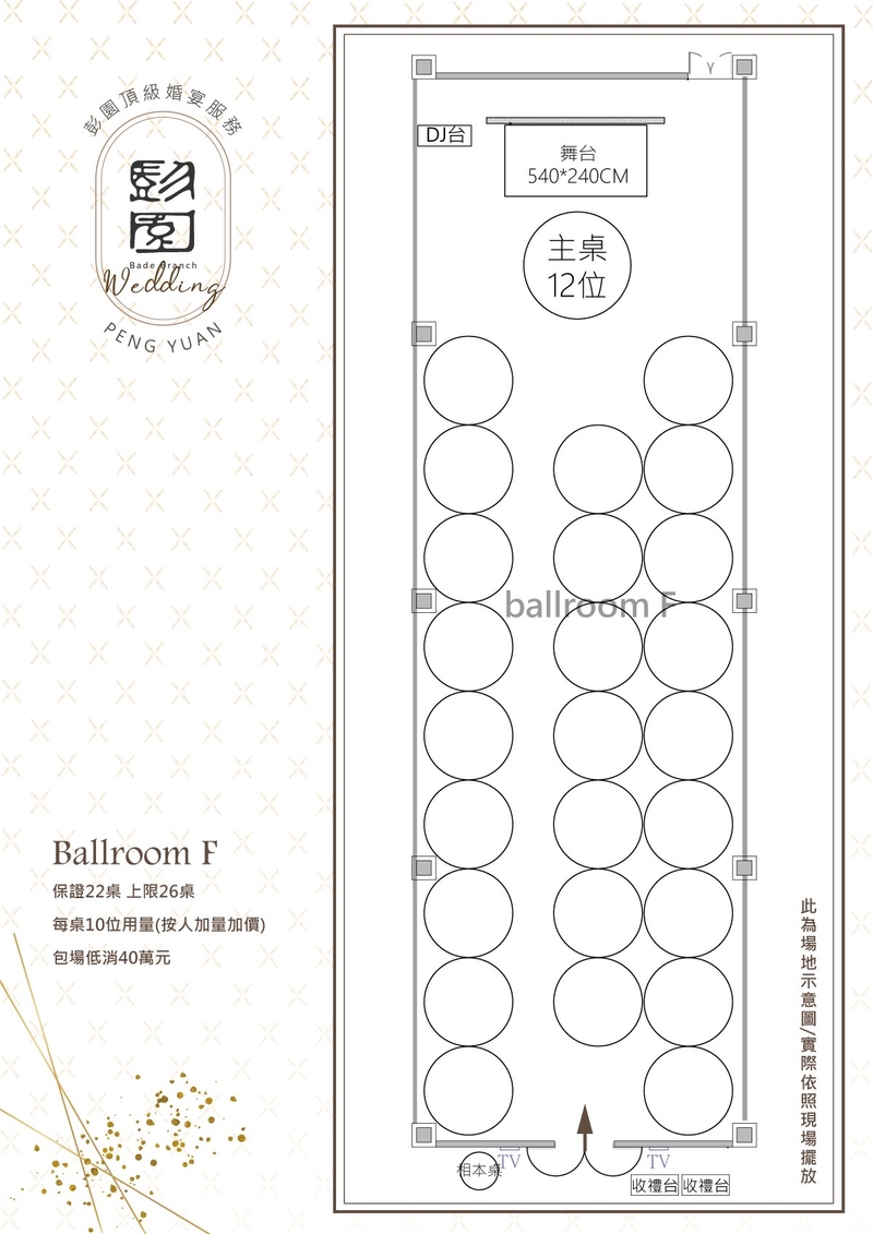 推薦彭園八德店Eric 永年 推薦 1 次熱心留言 2025-02-13 環境很漂亮,Eric介紹的也很詳細,特別了解我們年輕人的想法,我們有婚禮上一些疑慮也都很詳細的介紹,推薦各位來參觀彭園八德店,外面的證婚也很漂亮唷,但是但是但是建議大家日期出來一定要提早預訂簽合約,不然真的非常的難訂到… 推薦商家 彭園婚宴會館-八德館 婚宴場地 評價 (2133) 廳房(5) 影片(1) 方案(1) 詢問 覺得 讚爆了超推 00 69 次瀏覽 讚 留言 收藏 分享 分享 分享至 LINE 分享至 Facebook 複製連結