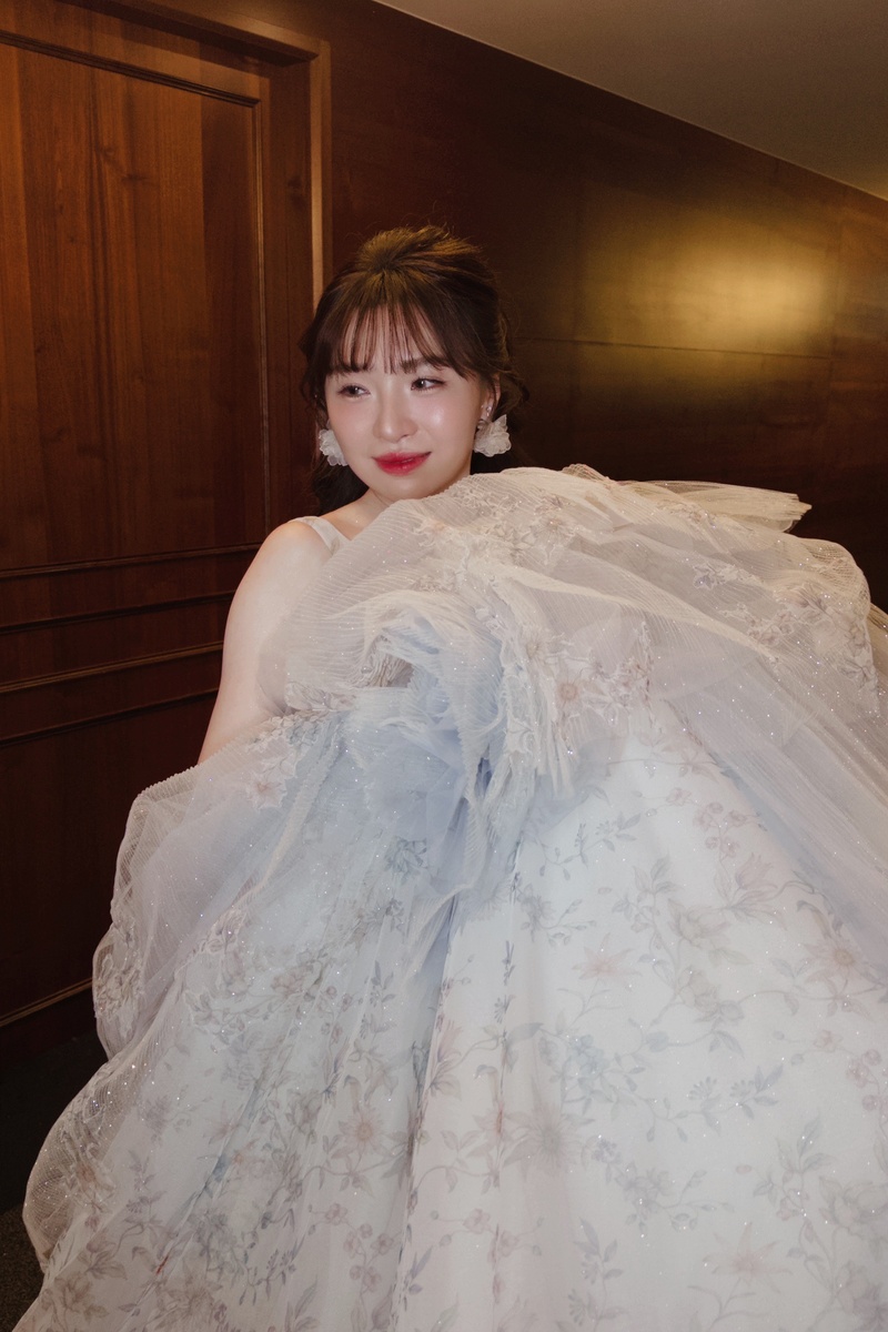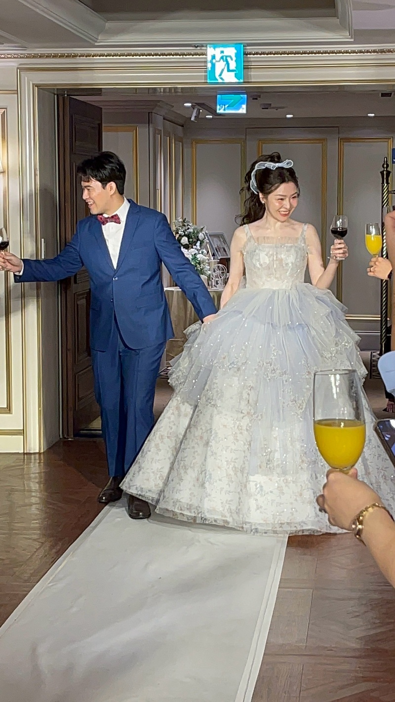 婚禮當天,天天老師比我還早到,七點就準備好了!三套禮服、四個造型,每個細節都處理得超級細膩,讓我每個角度都拍得自然又好看。尤其第三套造型,老師直接現場幫我剪了瀏海,整個驚艷,效果超級好,讓大家都誇我漂亮!