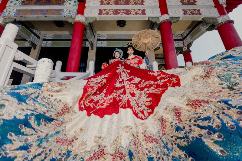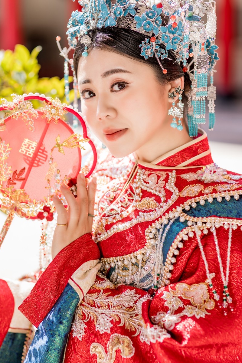 中式的禮服真的很吸睛,刺繡跟流蘇的設計很霸氣也很清秀,是一個很特別的體驗,第一次看到自己回到古代的感覺🤣