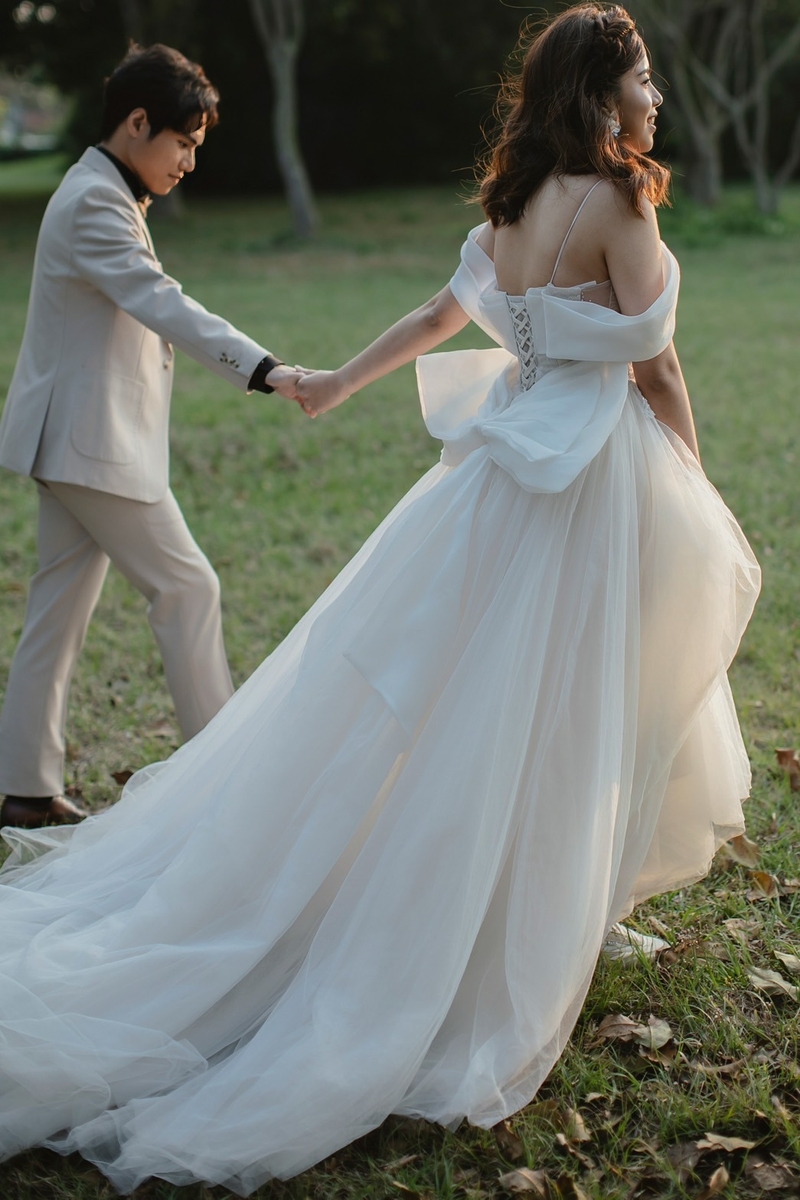 當初從好婚市集看到蒂芬妮精品婚紗,聽完他們的講解後,對此有了興趣,在現場就下訂了,後來到門市溝通,開始挑婚紗,婚紗種類許多,中式的禮服都很好看,直到拍攝當天,攝影師小宇會引導我們擺設動作,攝影助理阿豐在一旁協助我們的動作以及站位,也很有耐心的解決我們提出的需求,化妝師圓圓的化妝技術很棒,會針對每個人的臉型做出最適合的妝容,拍攝了一天也不會掉妝,整體而言很推薦蒂芬妮精品婚紗👍