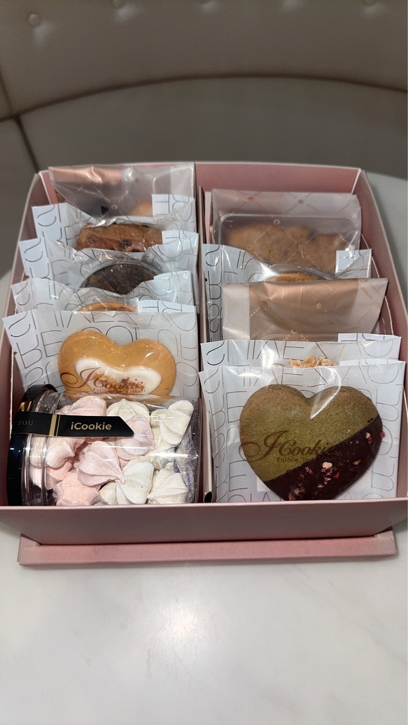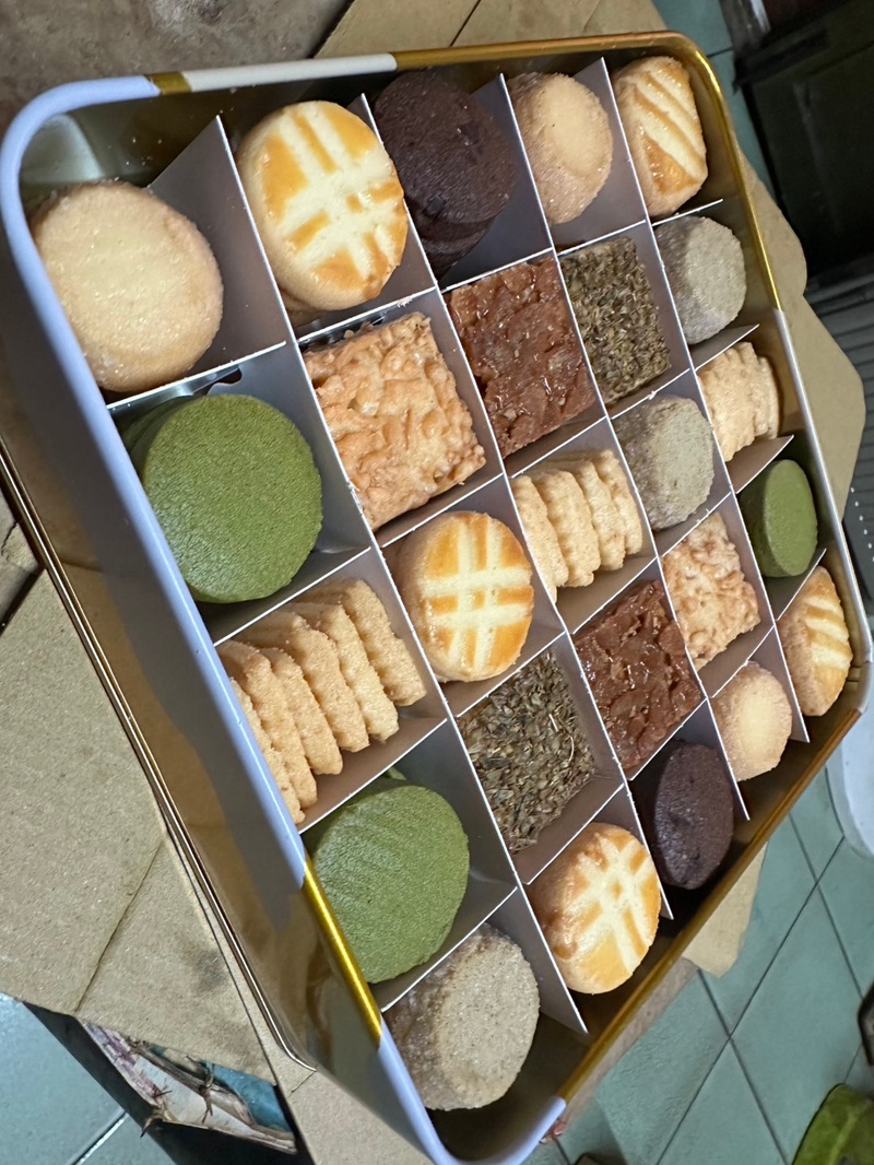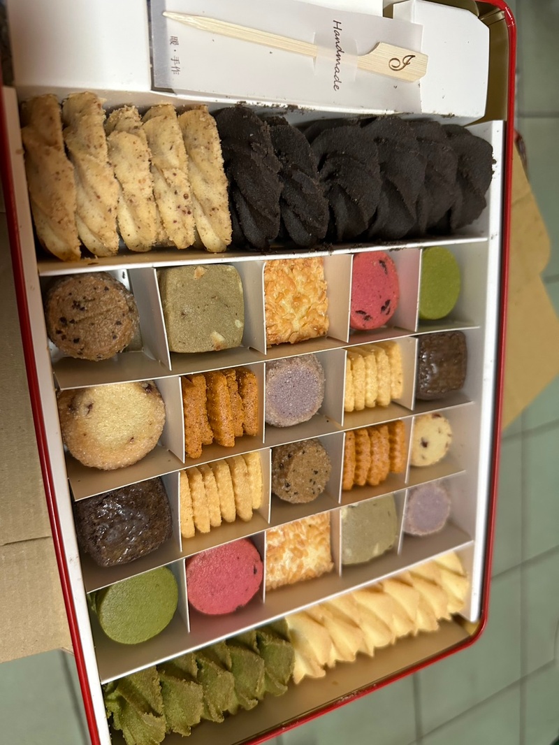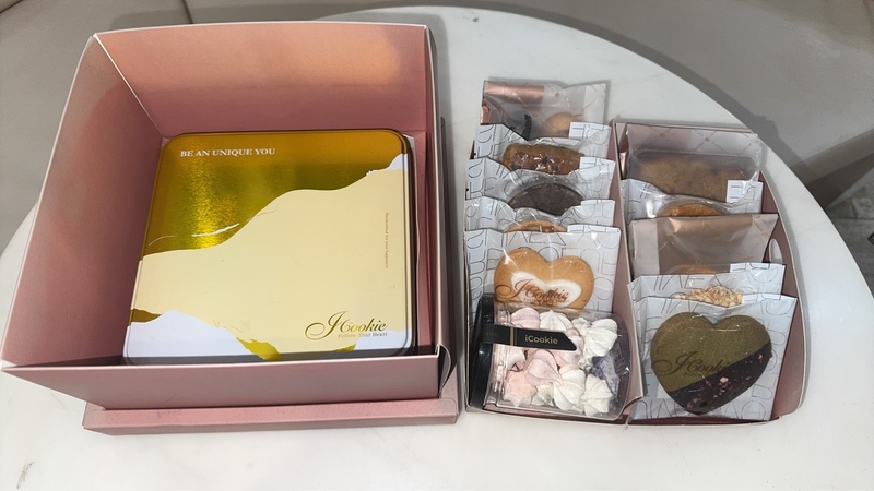 我選擇的是 雙層禮盒 上層是自由搭配的單包裝小餅乾 有多種樣式可以選 下層則是選用夏戀25宮格鐵盒整體來說 簡單 不過於奢華 適合我這種低調的人。