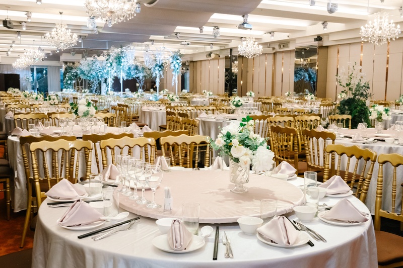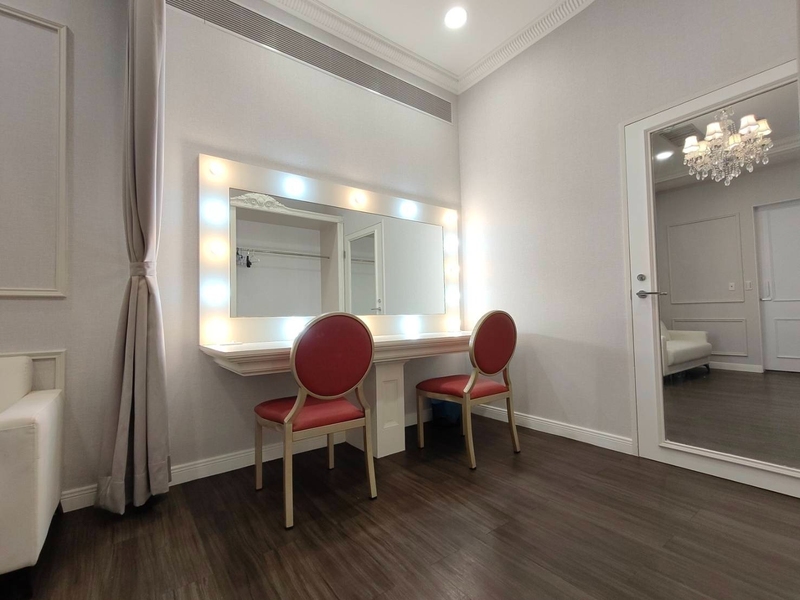 因為桌數大概在40桌上下 所以是看國際全廳。整個廳房沒有樑柱很方正,該有的獨立音響、聚光燈都有。還有另外去看新娘的休息室,就跟宴會廳連在一起,這樣進出超方便的。