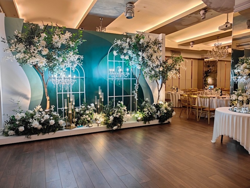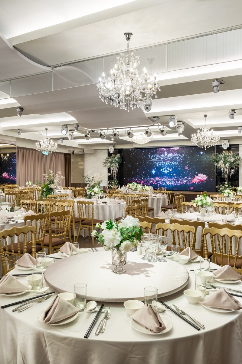 一樓的宴會全廳森林的配色很舒服,也很耐看,地板改成木地板也很喜歡,整間方正無樑柱很棒,不會有賓客被擋到,另外新娘休息室就在聽房旁邊這點也蠻喜歡的,因為不喜歡要上下樓的新娘休息室或是需要讓賓客找一下的新娘休息室,而且主持、婚佈、背板都包含,真的幫我們省下許多時間。