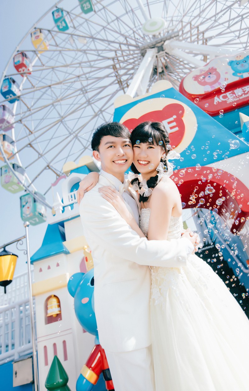 在拍照時也不會讓我們兩個傻站乾等,而是會引導動作、表情,讓整個拍攝自然流暢又富有變化。有惟老師本人超幽默,氣氛總是笑聲不斷,不知不覺我們的緊張感就被化解了!