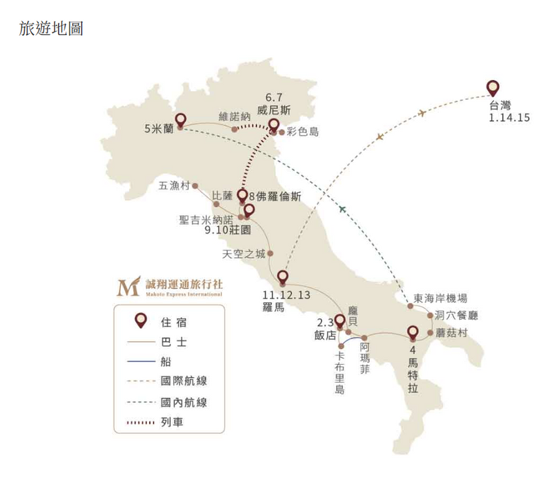 這次會選擇誠翔運通的義大利15日全覽行程,最吸引我的部分除了龐貝古城、卡布里島藍洞、馬泰拉的洞穴老城、五漁村都有進行安排,不是「走馬看花」而是真的讓人有時間體會那個地方的氛圍。另外,他們的行程表做得也很清楚,官網上清楚列出門票是否包含、小費安排、自理餐細節,一目了然,完全不用反覆問業務或猜測隱藏費用,對我們來說蠻加分的。