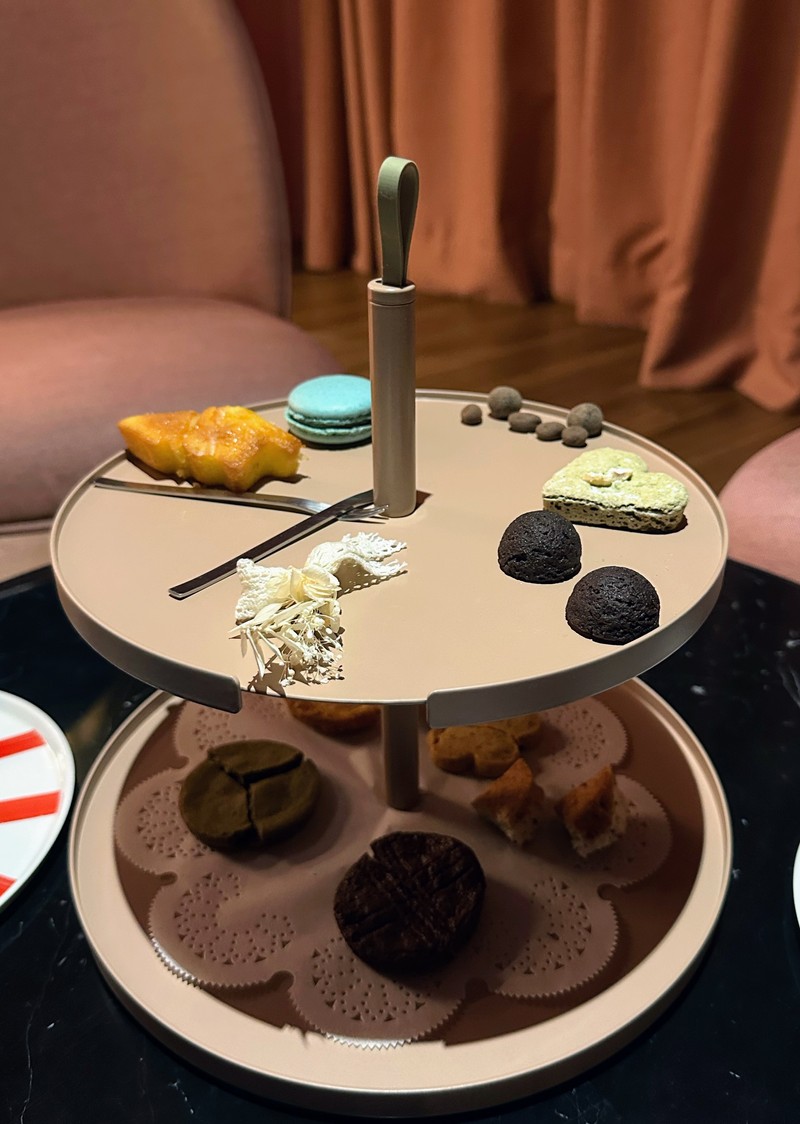 試吃場域安排:相較於其他店家,Chochoco試吃席燈光不明亮,要寫字或看東西相當吃力,桌子低不方便新人近距離觀察甜品外觀,也因為光線是黃光的關係,在比較盒子外觀時看起來會有點色差