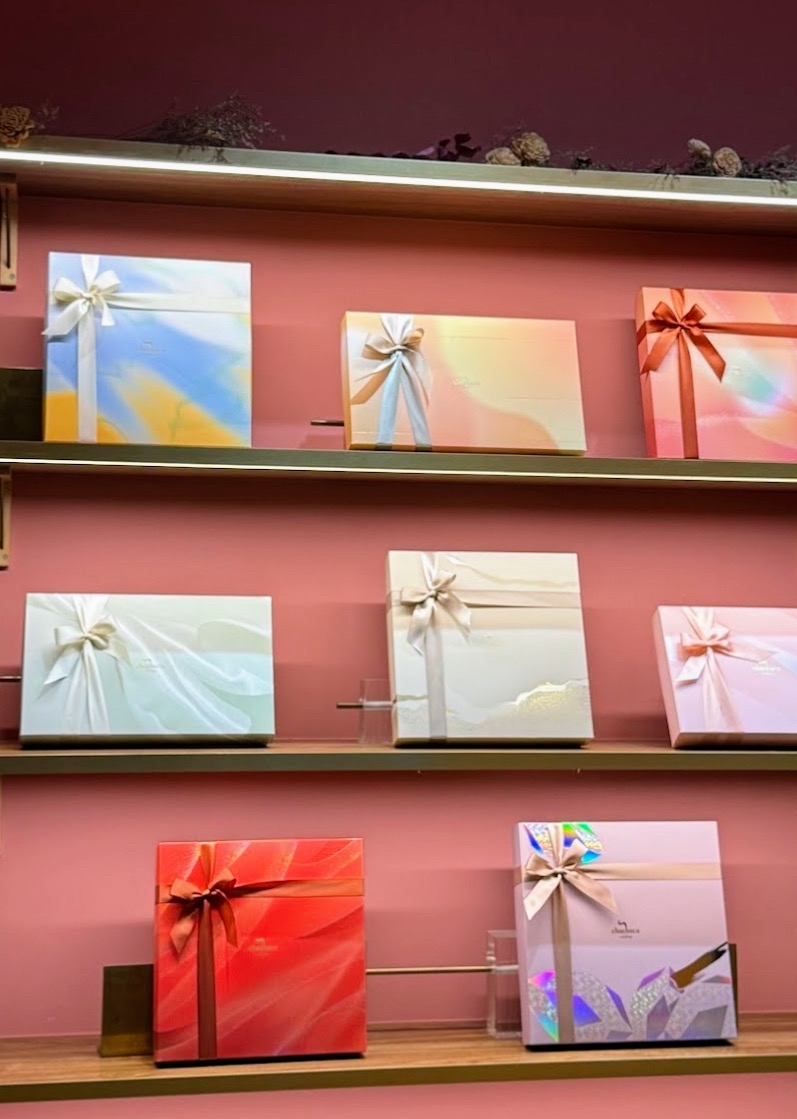 3.盒子外觀:盒子的設計雖然算是中規中矩,但相當喜歡盒子簡約的圖案設計,是我喜歡且偏好的風格,緞帶並不需要每盒額外加購,剛好符合我的期待與需求