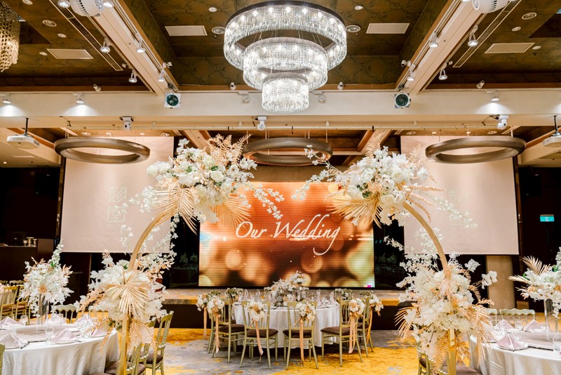 Mia 也很站在新人立場,不會強迫當天就下訂,而是耐心聆聽我們的需求,盡力幫忙爭取福利。她帶我們看了國際A和國際B兩個廳,兩間都很美,各有特色,最後我們選了國際A,桌數比較符合需求,而且不需要額外找廠商佈置,省了一筆預算。