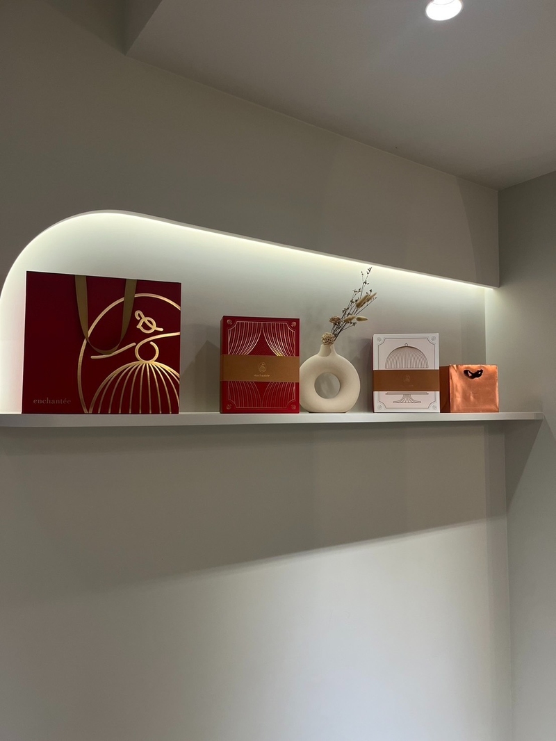 以前收過的喜餅幾乎都是各大老品牌,我們都覺得這不是我們想要的,所以決定結婚後就開始各種爬文,搜集了好多資料,樂朗奇的評價一直都很高,而我首先也被它的奢華包裝吸引了,剛好趁著要到台北參加朋友喜宴,順便預約樂朗奇的試吃。