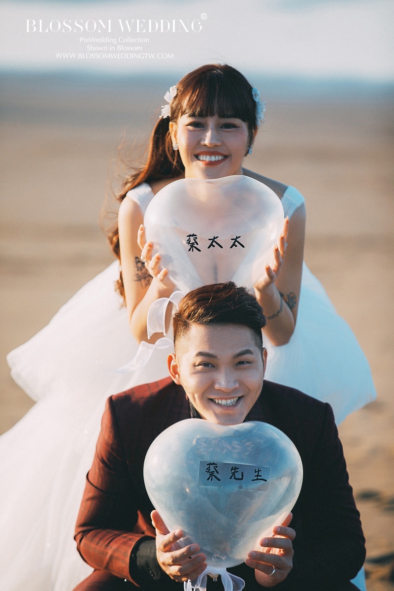 前一個禮拜我們有視訊聊天,看我們想要什麼樣的拍照風格,因為我道具很多,Ben就有推薦道具在哪一套時用,哪套婚紗在我們選的場地拍~