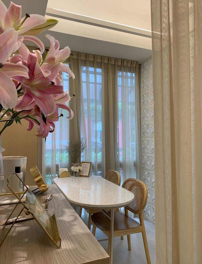 從門外看見的綠色植物可以看見店家很用心的維護得很乾淨整潔舒服的喜餅試吃空間🌿