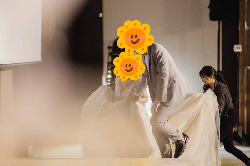 小助手在二進敬酒時超認真的在顧我的裙擺😭 因為禮服是進口的加價款,超怕被人踩到😱