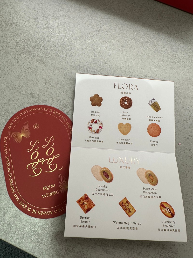 喜餅推薦 Lu 推薦 3 次熱心留言 2025-05-25 花神喜餅走法式精品路線,外盒設計浪漫優雅,包裝精緻有質感,拍照也很好看。口味部分主打花香、果香和茶香和堅果系列,都有獨特的搭配與口感,像是玫瑰鐵觀音、桂花達克瓦茲、蔓越莓費南雪等都很特別,甜而不膩。每塊餅乾小巧精緻,口感多層次,適合喜歡細膩風味的人。整體走一個韓式流行風,適合追求質感與獨特性的新人。 推薦商家 bloomwedding花神法式精品喜餅 喜餅 評價 (400) 禮盒(6) 方案(7) 詢問 覺得 讚爆了超推 00 38 次瀏覽 讚 留言 收藏 分享 分享 分享至 LINE 分享至 Facebook 複製連結
