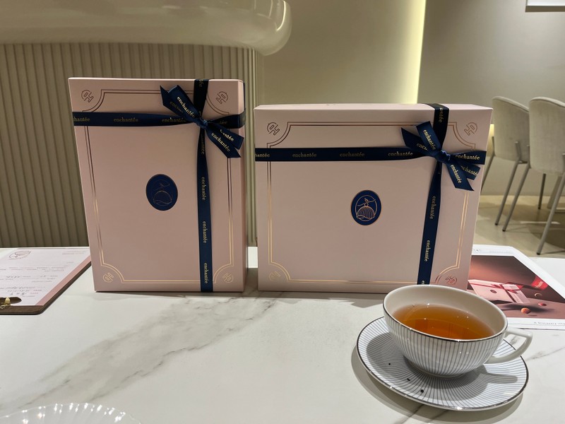 現場看過一輪禮盒實體後,我最喜歡他們的「頂級湛藍系列」,盒型設計很有質感,湛藍色搭配粉嫩色,撞色卻不突兀。設計不會過於花俏,十分優雅耐看。