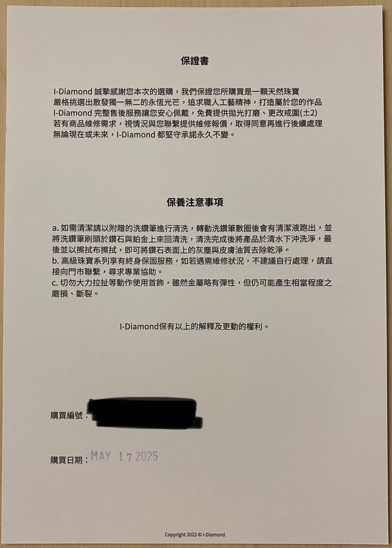 一開始在爬文時其實沒什麼頭緒,直到開始做功課,看了一些前輩的分享文之後,鎖定了幾家作為候選名單。原本預期會跑很多間店花很多時間比較,結果很幸運,第一間走進I-Diamond,我就直接下訂了(探險路途極短😂